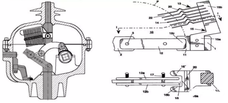 與動觸頭相連的旋式翼片在腔內(nèi)旋轉(zhuǎn)時產(chǎn)生沿軸向吹出的氣體橫掃觸頭之間形成的電弧