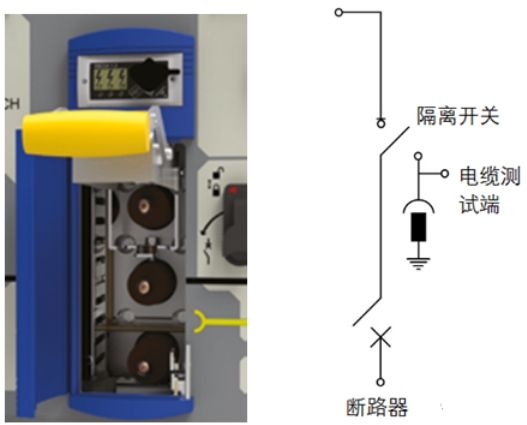 即對(duì)三工位開關(guān)接地靜觸頭裝置絕緣套管和可拆開的接地短接排,如施耐德的RM6,為了測(cè)驗(yàn)電纜絕緣和查找毛病,有可能在不斷開銜接設(shè)備的情況下,經(jīng)RM6向電纜引進(jìn)42kV直流實(shí)驗(yàn)電壓,繼續(xù)15分鐘;為了經(jīng)過接地觀察窗引進(jìn)直流實(shí)驗(yàn)電壓,應(yīng)閉合接地開關(guān)和翻開可移動(dòng)接地銜接設(shè)備,實(shí)驗(yàn)時(shí)需運(yùn)用特殊實(shí)驗(yàn)夾子。