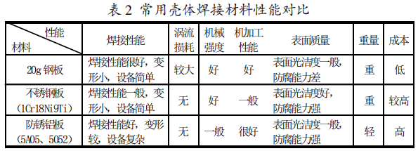 環(huán)網(wǎng)柜焊接氣箱常用材料主要有20g鋼板、不銹鋼板(1Cr18Ni9Ti)、防銹鋁板(5A05,5052)等。其性能對(duì)比見表2。