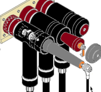 即對三工位開關接地靜觸頭設備絕緣套管和可拆開的接地短接排,如施耐德的RM6,為了檢驗電纜絕緣和查找缺點,有或許在不斷開聯(lián)接設備的狀況下,經RM6向電纜引入42kV直流試驗電壓,持續(xù)15分鐘;為了通過接地觀察窗引入直流試驗電壓,應閉合接地開關和翻開可移動接地聯(lián)接設備,試驗時需運用特別試驗夾子。