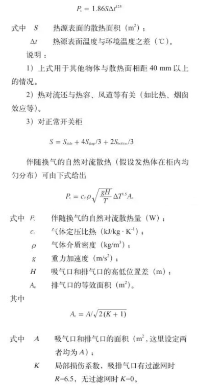 (2)熱對流是物體表面與相接觸的流體間有溫差時呈現(xiàn)的傳熱現(xiàn)象。柜體表面、氣箱表面或熱源表面的天然對流散熱可用下式預算