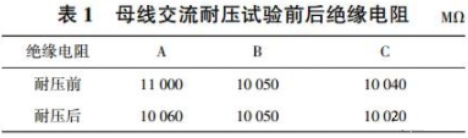 從耐壓實驗進(jìn)程和表1絕緣電阻數(shù)據(jù)來看,該35kV 充氣柜母線耐壓實驗合格。
