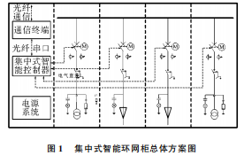 1集中式智能環(huán)網(wǎng)柜總體方案智能環(huán)網(wǎng)柜是利用現(xiàn)代的電力電子、自動(dòng)化控制、傳感測(cè)量等技術(shù)將10kV負(fù)荷開(kāi)關(guān)柜、斷路器柜、熔斷器柜、互感器與保護(hù)裝置、通信裝置、計(jì)量?jī)x表等模塊組合在一起,實(shí)現(xiàn)電網(wǎng)一次設(shè)備與二次設(shè)備的良好結(jié)合。集中式智能環(huán)網(wǎng)柜整體框架如圖1所示。