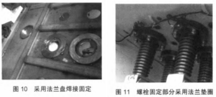 (3)穿墻套管與開關柜底板密封固定部位選用法蘭盤焊接固定設備,如圖10所示,確保穿墻套管與開關柜底板觸摸部分平整無變形。一起螺栓固定部分選用法蘭墊圈,如圖11所示,確保了螺栓緊固力均勻作用于穿墻套管,然后消除了穿墻套管密封固守時的不均勻固定應力。
