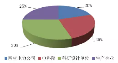 本著為電力行業(yè)開(kāi)展效勞的準(zhǔn)繩,本次調(diào)查網(wǎng)省電力公司占比20%,電科院占比25%,科研設(shè)計(jì)單位占比30%,消費(fèi)企業(yè)占比25%。如圖1 所示。