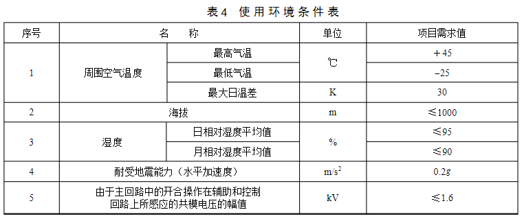 4?使用環(huán)境條件表?0.4kV低壓電纜分支箱使用環(huán)境條件見表4。特殊環(huán)境要求根據項目情況進行編制。