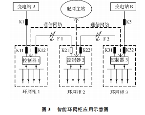 的區(qū)段,兩端都能或許都不能檢測到毛病信號(hào)的區(qū)段則不是毛病線路,所以可快速簡略的將毛病點(diǎn)定位在K12和K21之間。開關(guān)K12會(huì)跳閘,開關(guān)K21堅(jiān)持分閘狀況并閉鎖,將毛病區(qū)段切除。配網(wǎng)主站接收到隔絕成功信息,通過調(diào)度自動(dòng)化系統(tǒng)將開關(guān)K11合閘,恢復(fù)非毛病區(qū)域供電。同理,當(dāng)在F2處發(fā)生毛病時(shí),集中式智能控制器將搜集到的毛病信號(hào)傳輸?shù)脚渚W(wǎng)主站,配網(wǎng)主站對(duì)毛病信號(hào)進(jìn)行分析和邏輯判別。通過毛病點(diǎn)處在兩端感受到信號(hào)不通的區(qū)段的判據(jù),將毛病定位在K22和K31之間。開關(guān)K3會(huì)跳開然后自動(dòng)重合,開關(guān)K31、K22跳開后不再閉合,將毛病區(qū)段切除。配網(wǎng)主站接收到隔絕成功信息,通過調(diào)度自動(dòng)化系統(tǒng)將開關(guān)K21合閘,恢復(fù)非毛病區(qū)域供電。在整個(gè)過程中,從發(fā)現(xiàn)毛病到毛病隔絕最終將非毛病區(qū)域恢復(fù)供電所需求的時(shí)刻非常的少,能夠最大極限的前進(jìn)供電的可靠性,這是選用智能環(huán)網(wǎng)柜的優(yōu)越性地址