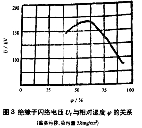 電纜分支箱地處交通要道,背靠山坡,面向公路,塵土很大,絕緣子外表的積塵較多,在污層受潮時。其間所含可溶性鹽類及酸堿成分溶解于水中,使外表電導率驟增,走漏電流許多添加,大大下降閃絡電壓。一般說來,絕緣子的污閃電壓隨其污染程度的添加而下降。污染嚴峻時,跟著污染程度持續(xù)添加,污閃電壓的下降已很緩慢,但這時污閃電壓常?,F(xiàn)已低于作業(yè)電壓了。單調(diào)污穢的電阻較大,它并不下降絕緣子的閃絡電壓,一般當空氣相對濕度小于50%~70%時,沿面閃絡電壓不會下降;高于這數(shù)值時,跟著濕度添加,閃絡電壓靈敏下降,如圖3所示。實踐作業(yè)中,絕緣子污閃事端都產(chǎn)生在霧、露、陰雨連綿等高濕度的氣候.因為在這種條件下、積塵中水深性的鹽類溶解,使污層成為了半導體,大大添加走漏,下降閃絡電壓。本次事端正值當?shù)厍лd一時的大雨期間,而開關(guān)柜柜體的密封較差,柜內(nèi)相對濕度已達90%以上,開關(guān)柜的操作組織組織嚴峻腐蝕,以至于完全不能正常操作,由臟污沿面放電的進程的談論可知,污層的電阻越大,走漏電流越小,放電翻開越困難,閃絡電壓也相應跋涉。在相同污染和濕潤條件下,介質(zhì)外表形狀、南北極間的沿面最短間隔即走漏間隔是影響外表電阻和閃絡電壓的重要要素。走漏間隔添加,污閃電壓也添加。不同成都的污穢狀況對線路及變電站絕緣的影響程度是不同的,因而應根據(jù)不同的污移狀況,選用相應的絕緣規(guī)范確保電網(wǎng)安全作業(yè)"?,F(xiàn)在,我們用走漏比距來估計臟污條件下絕緣子的耐污功用。因為我局所轄電網(wǎng)為渝中區(qū),被定為三級污區(qū),按變電站設(shè)備考慮泄瀾比距應大于4cm/MkV。